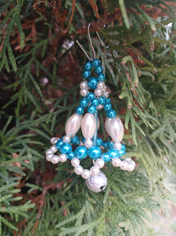 tyrkysový zvonek z voskovaných perliček s rolničkou- vel. 7 cm