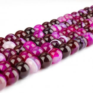- Přírodní pruhovaný achát fuchsiový korálek 6 mm